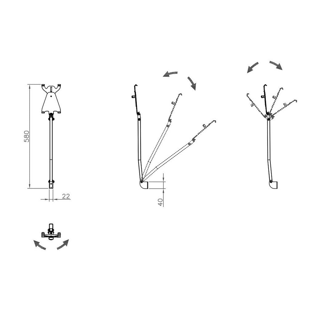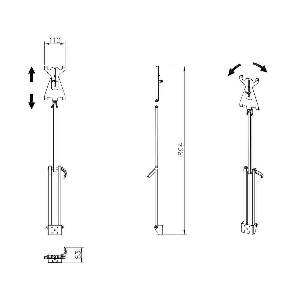 Il modello snodabile con tre tubolari offre stabilità superiore e regolazione verticale precisa. La struttura robusta (1,2 kg) e l'ampia superficie di regolazione (894 mm) lo rendono perfetto per chi cerca una soluzione professionale per il proprio camper, garantendo supporto sicuro anche su strade sconnesse.