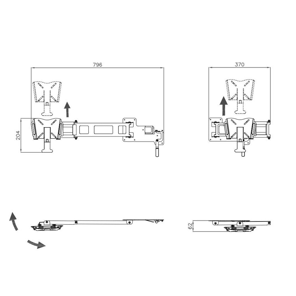 Il braccio maxi offre un'ampia gamma di movimenti e regolazioni, permettendo di posizionare il televisore esattamente dove serve. Ideale per ottimizzare la visuale in ogni angolo del veicolo, garantendo comfort e praticità d'uso.