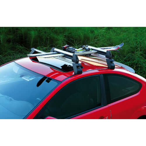 Il Portasci è in lega di alluminio, leggero e resistente alla corrosione. Dotato di gomma morbida e performante anche in condizioni di freddo estremo.