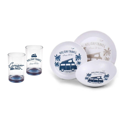 Kit piatti e bicchieri per 2 persone Holiday Travel in Melamina