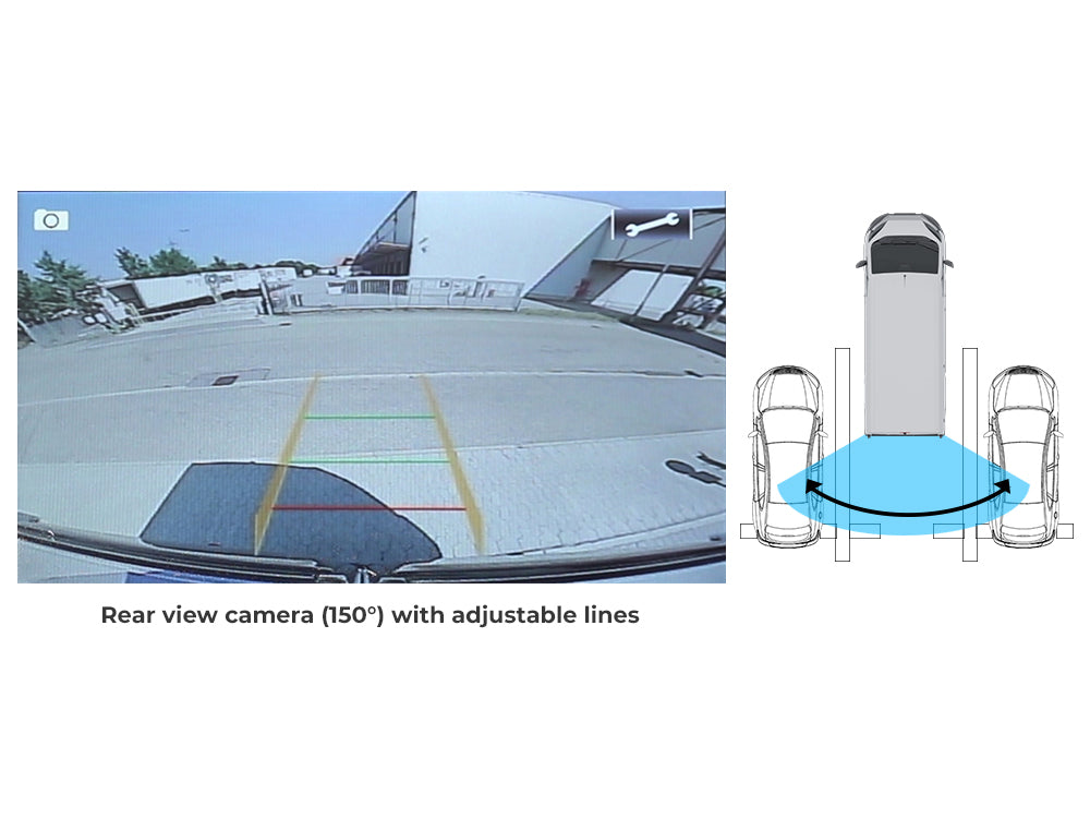 - Telecamera posteriore (180°) con possibilità di attivare o disattivare le linee di direzione.