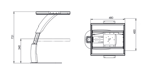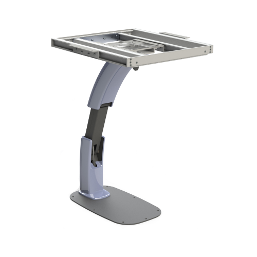 Supporto tavolo telescopico in acciaio con sollevamento automatico.