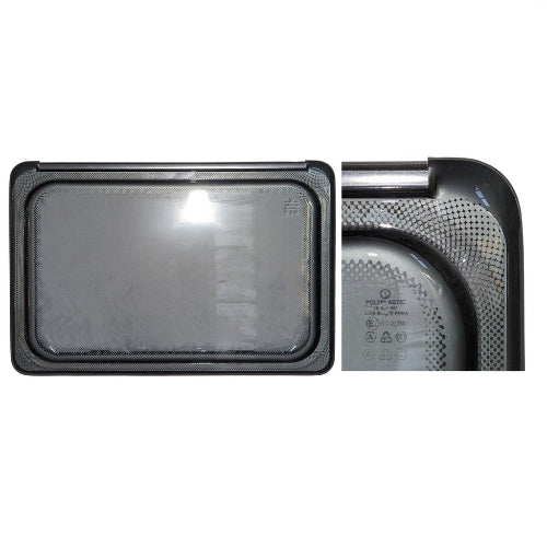 Finestre a compasso Polyplastic modello F50 di alta qualità. Design robusto e funzionale che garantisce ottima tenuta stagna e facilità di apertura. Doppia opzione di serigrafia per personalizzare l'estetica del veicolo.