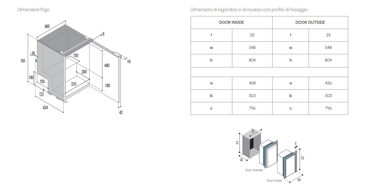 | Parametro | DOOR INSIDE (mm) | DOOR OUTSIDE (mm) |