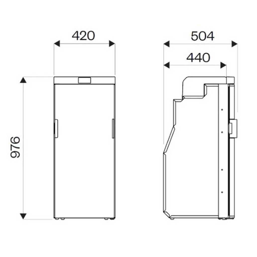 Il frigorifero Slim 12/24V 90L combina una capacità generosa di 90 litri con un design compatto che lo rende ideale per veicoli ricreativi dove lo spazio è prezioso. Dotato di display LED con modalità Power Saving e Silent Night, garantisce massima efficienza energetica e funzionamento silenzioso durante le ore notturne. Il profilo di soli 440 mm di profondità permette installazioni in spazi ridotti senza compromettere le prestazioni.