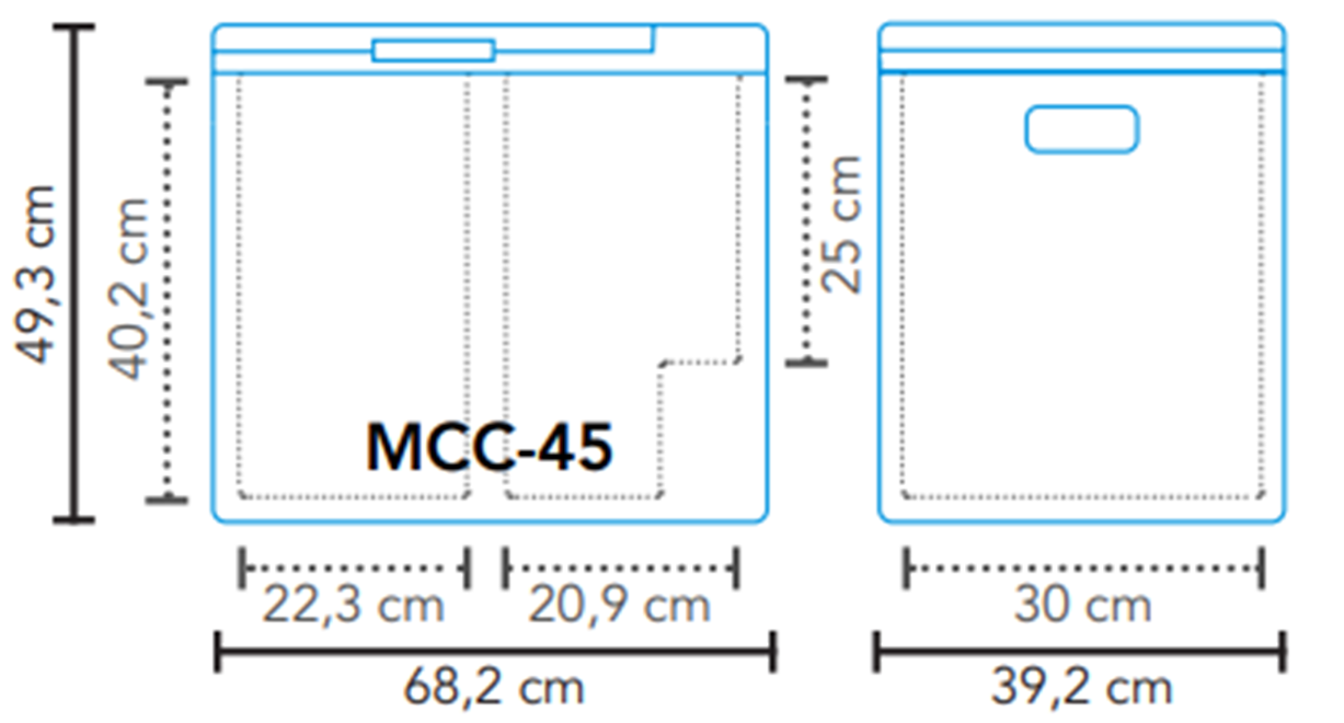 | MCC-45 Dual Zone | 45 Litri totali (2 zone) | -18°C / +10°C | 12V / 24V / 230V | 18,3 kg | 68,2 x 39,2 x 49,3 cm | Doppia zona frigo/freezer |