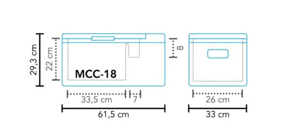 | MCC-18 | 18 Litri | -18°C / +10°C | 12V / 24V / 230V | 11,4 kg | 61,5 x 33,5 x 29,3 cm | Display LCD, App Mestic, USB |