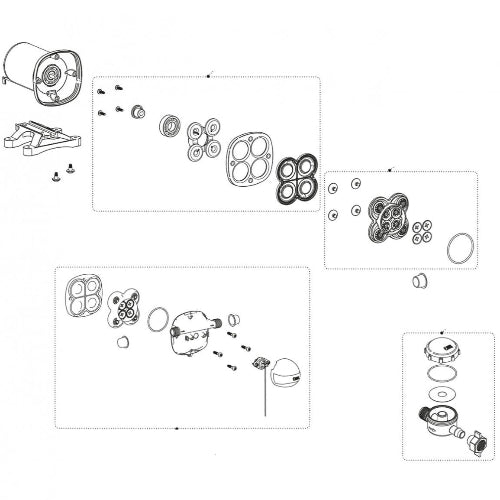 - Kit Gruppo Trasmissione (98657-012): Componenti meccanici per il movimento e la trasmissione della pompa.