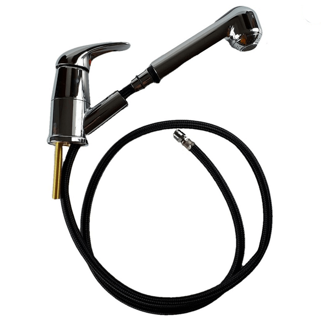 Miscelatore cromato senza flessibili. Disponibile con doccia estraibile piccola o grande.