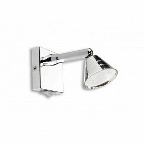 Completo di interruttore, con schermo in policarbonato trasparente, base e holder in ABS cromo lucido, braccetto flessibile in metallo cromato.