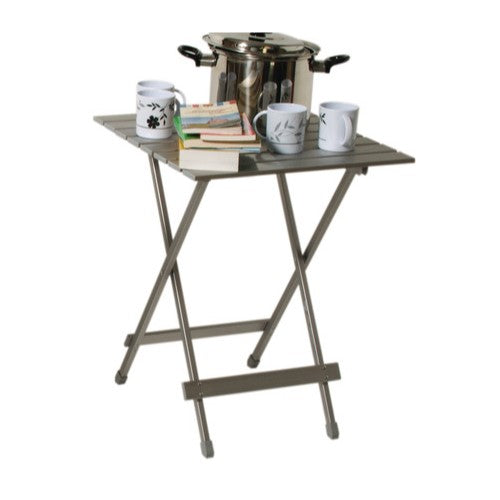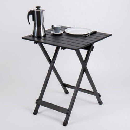 Tavolino in alluminio Camp4, resistente alle intemperie e molto pratico da montare.