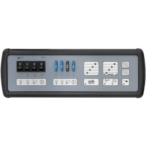 In questa categoria sono raggruppati tutti i sistemi completi di comando e controllo per l'impiantistica elettrica a 12V del camper e della caravan.