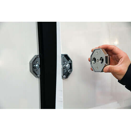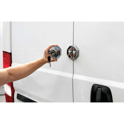 Il Kit serratura aggiuntiva per porte veicoli commerciali Vigilant della Lampa è idoneo per porte a scorrimento e battenti.