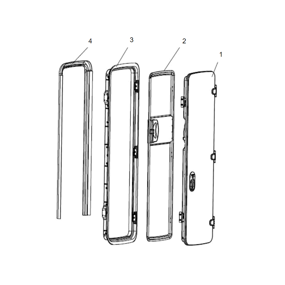 Con riferimento all'immagine allegata è possibile ordinare tutti i ricambi della Porta Dometic Cara D-R - Parti Complete