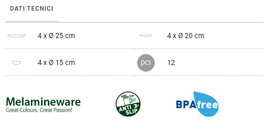 Tutti i piatti del set Brunner Midday Blue Ocean sono realizzati in melamina, un materiale plastico leggero e altamente resistente agli urti, al calore e all'umidità.