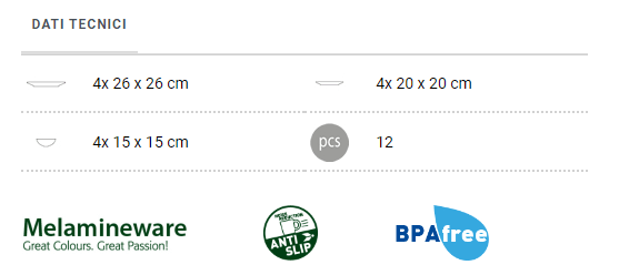 Tutti i piatti del set Brunner Midday Khadì sono realizzati in melamina, un materiale plastico leggero e altamente resistente agli urti, al calore e all'umidità.
