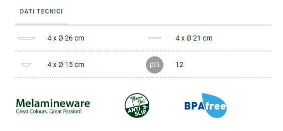 Tutti i piatti del set Brunner Midday Nautical sono realizzati in melamina, un materiale plastico leggero e altamente resistente agli urti, al calore e all'umidità.
