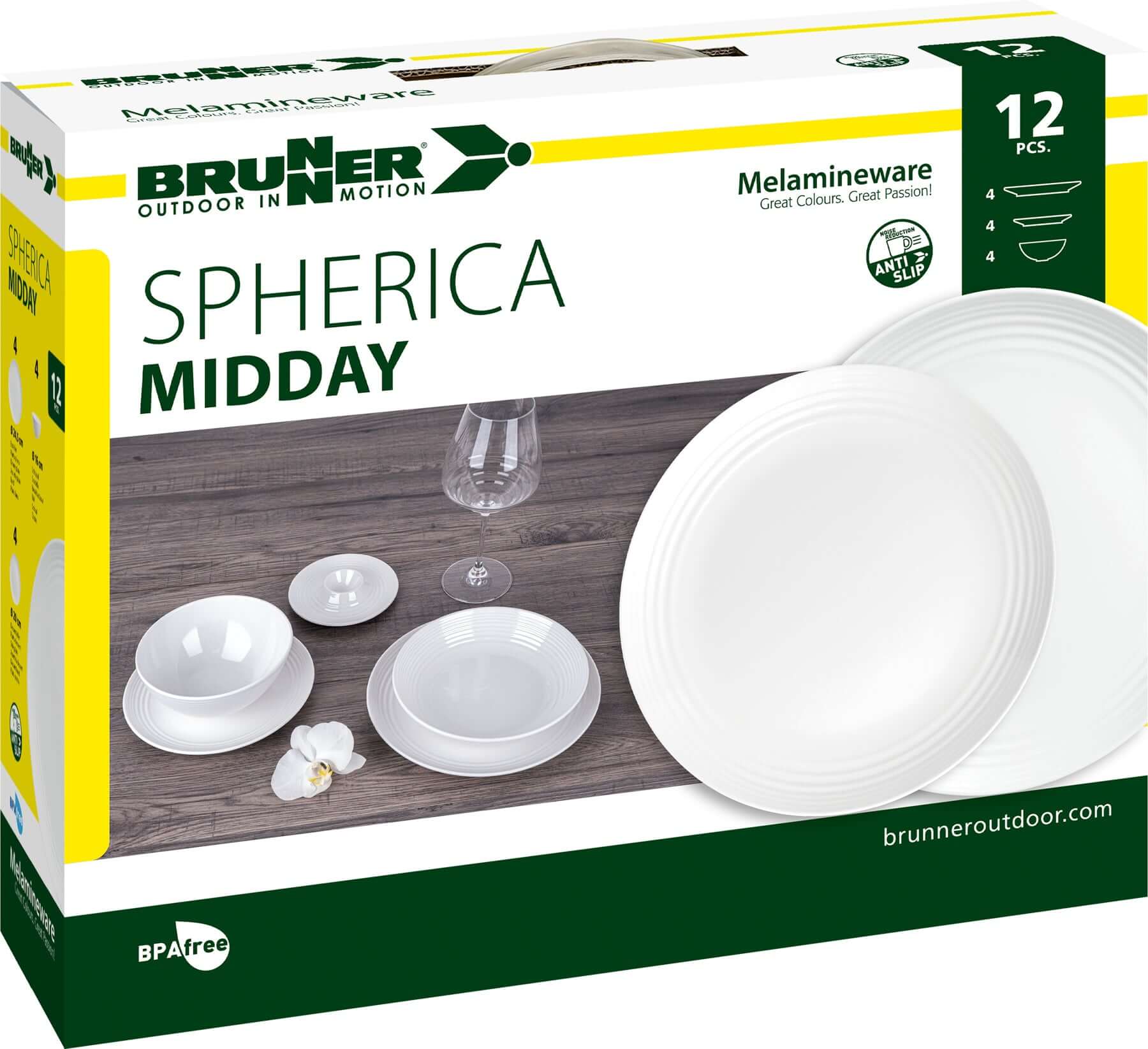 Il set Brunner Midday Spherica è un set di piatti da campeggio costituito da 12 pezzi: 4 piatti piani, 4 piatti dessert e 4 scodelle.