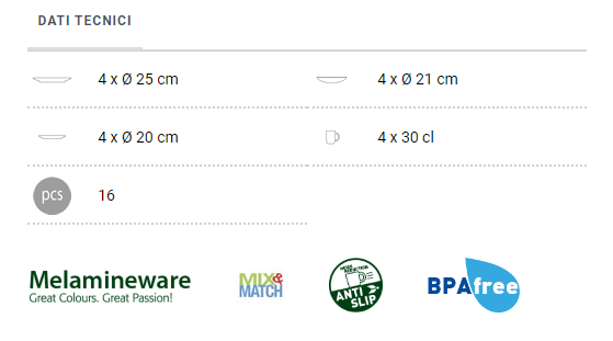 Tutti i piatti del set Brunner Lunch Box Space sono realizzati in melamina, un materiale plastico di alta qualità che conferisce ai piatti leggerezza e resistenza agli urti, al calore e all'umidità.
