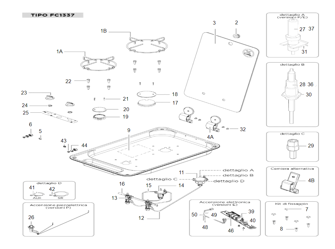 Con riferimento all'immagine allegata è possibile ordinare tutti i ricambi del piano cottura Can mod. FC 1337