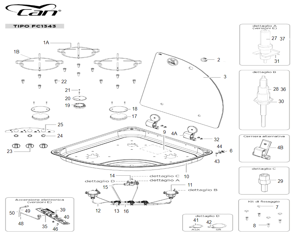 Ricambi piano cottura Can mod. FC 1343