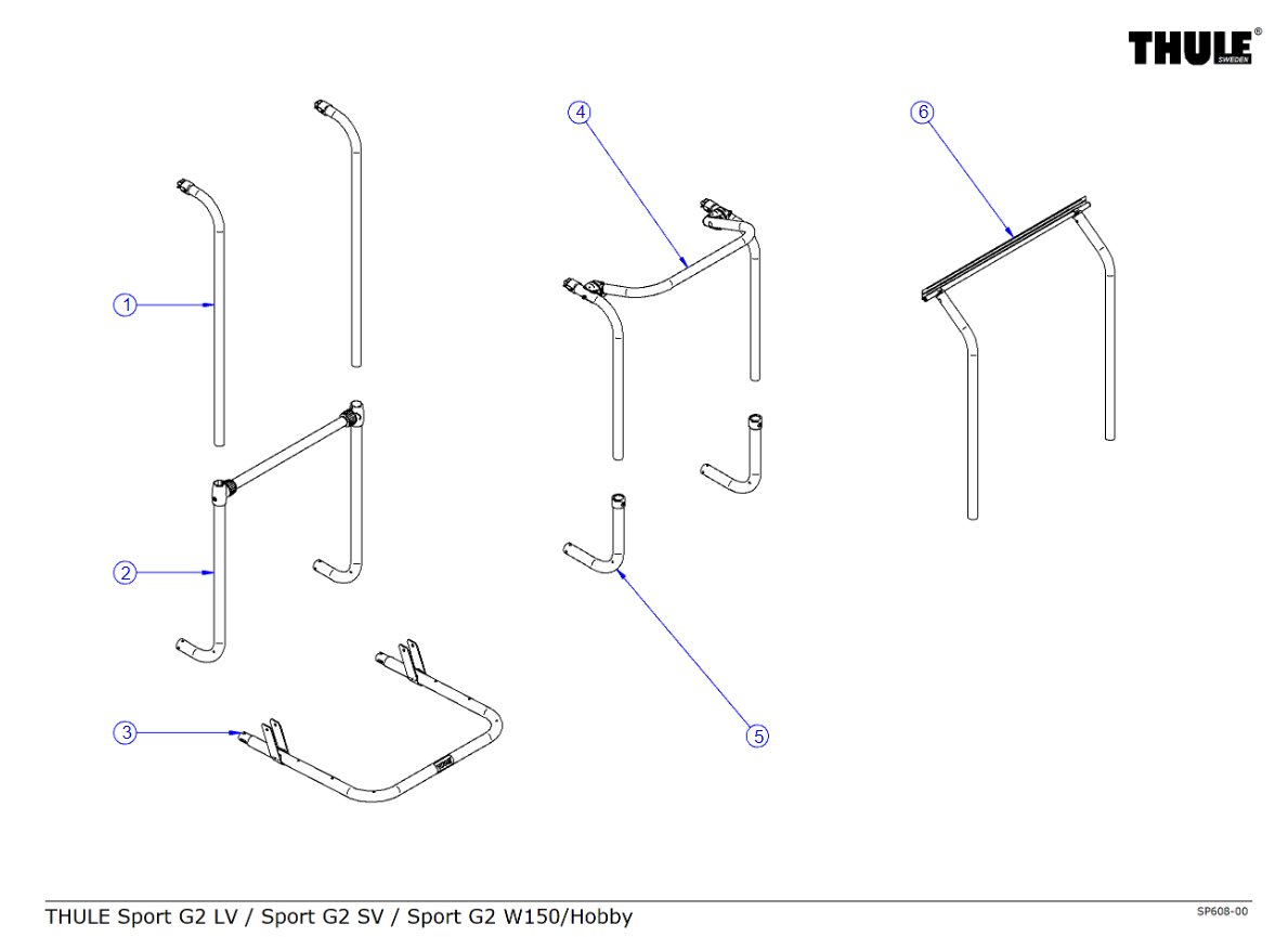 Con riferimento all'immagine allegata è possibile ordinare tutti i ricambi del portabici a parete Thule Sport g2 hobby
