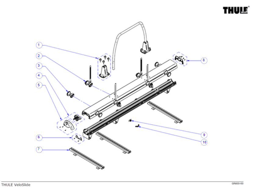 Con riferimento all'immagine allegata è possibile ordinare tutti i ricambi del portabici a parete Thule Veloslide