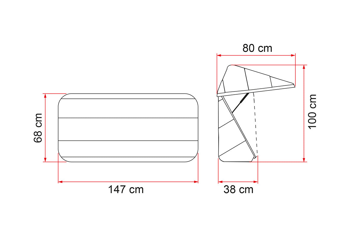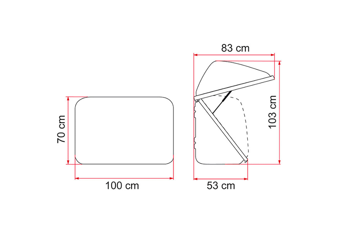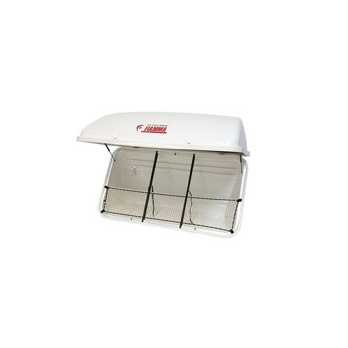 Completa di cerniere in acciaio inox, profili in alluminio e di rete per trattenere gli oggetti trasportati.
