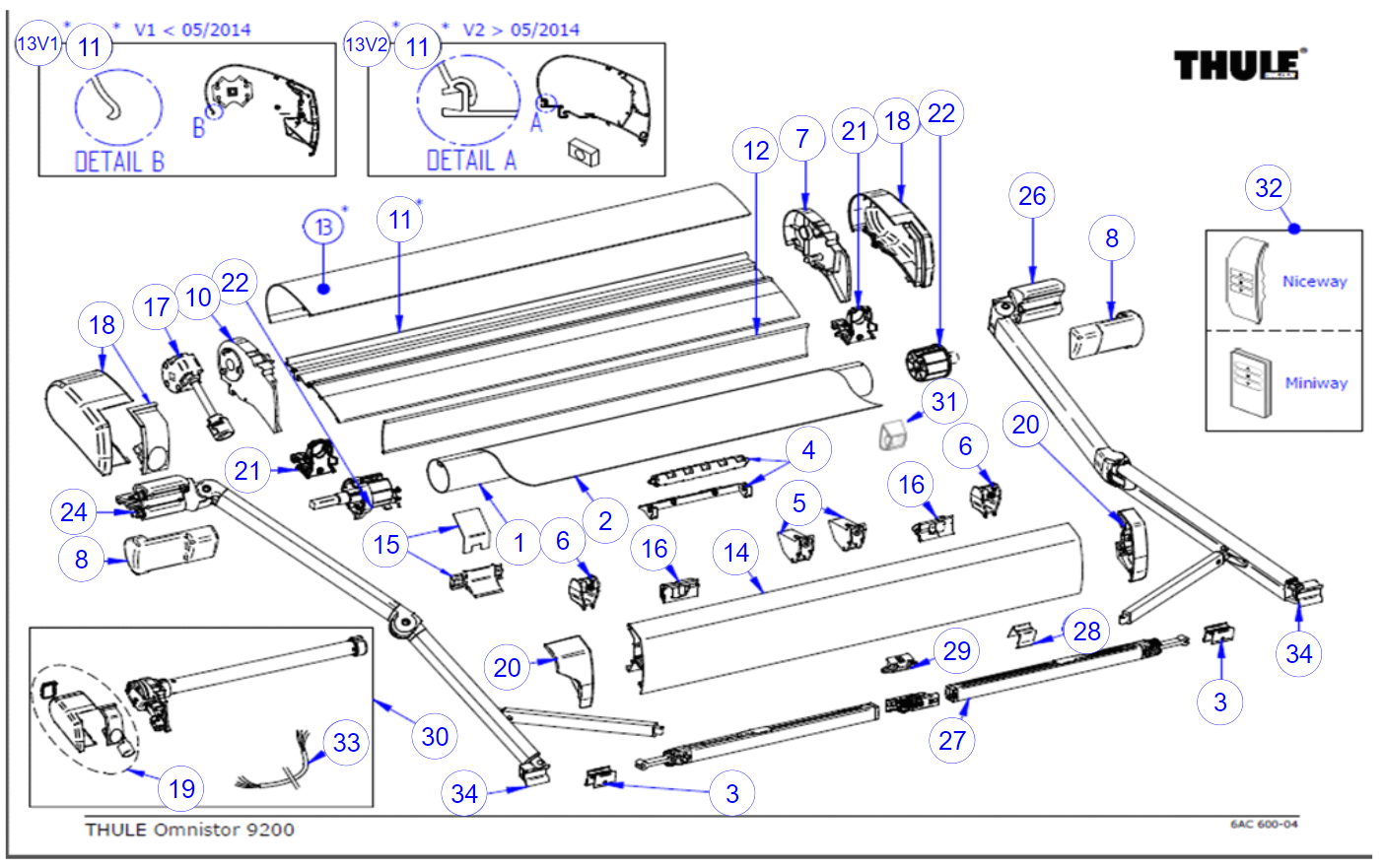 Ricambi tendalino a tetto Thule Omnistor 9200