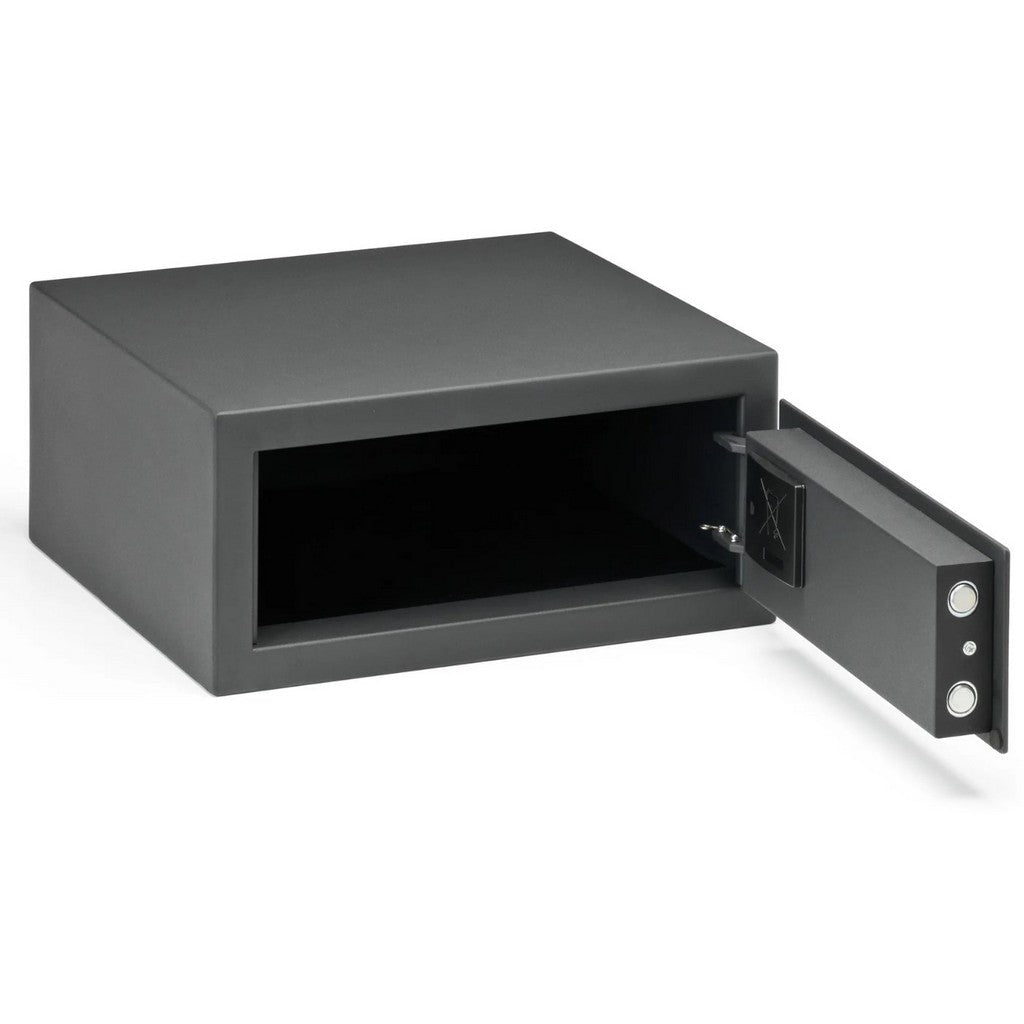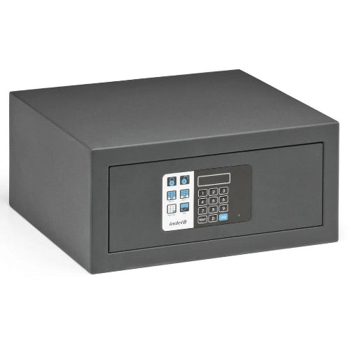 Con la sua solida struttura in acciaio e il sistema di chiusura motorizzato, questa cassaforte grigia scuro rappresenta la soluzione definitiva per chi viaggia e cerca affidabilità massima in spazi compatti.