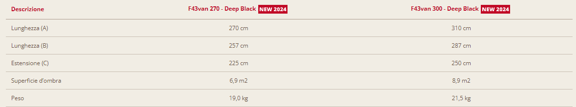 Compatibile con accessori dedicati come pareti frontali, Room Van Premium e Rafter LED Van (quest’ultimo per la versione da 270 cm).
